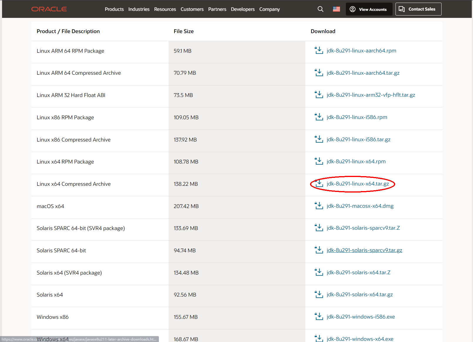 地址链接:https://www.oracle.com/java/technologies/javase/javase8u211-later-archive-downloads.html
