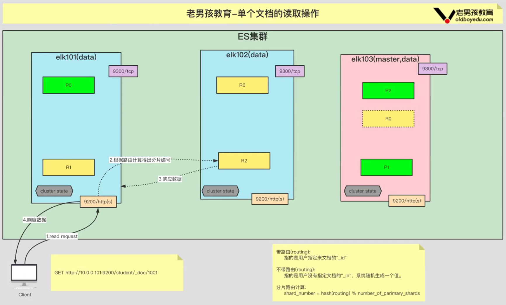 1、客户端发送10.0.0.101:9200/student/_doc/1001请求