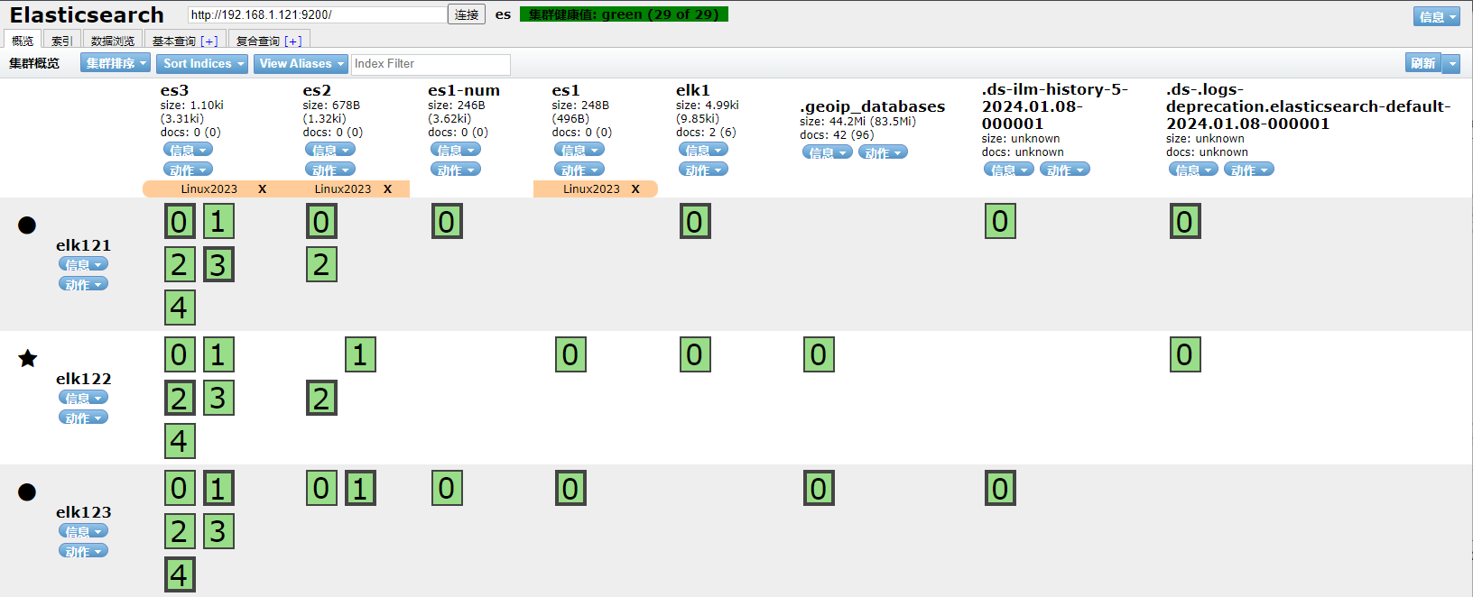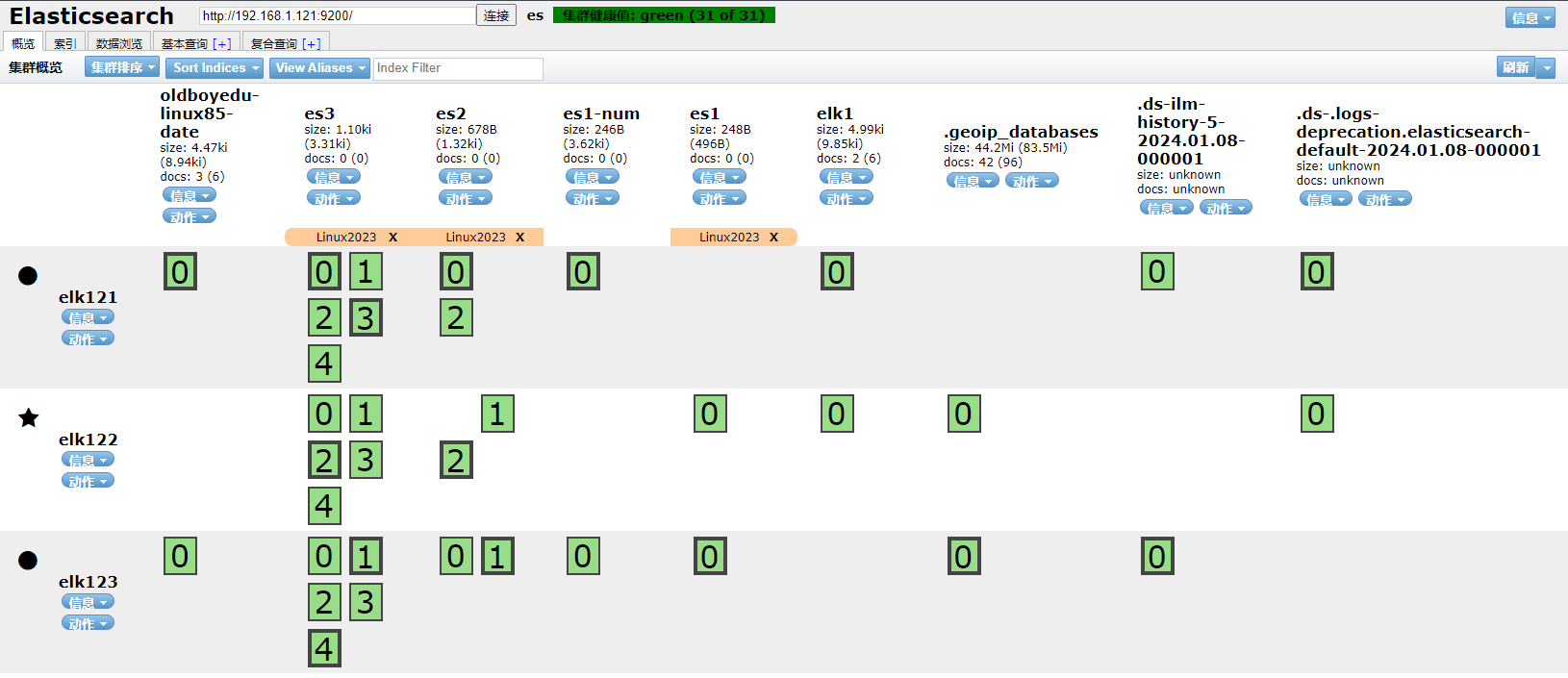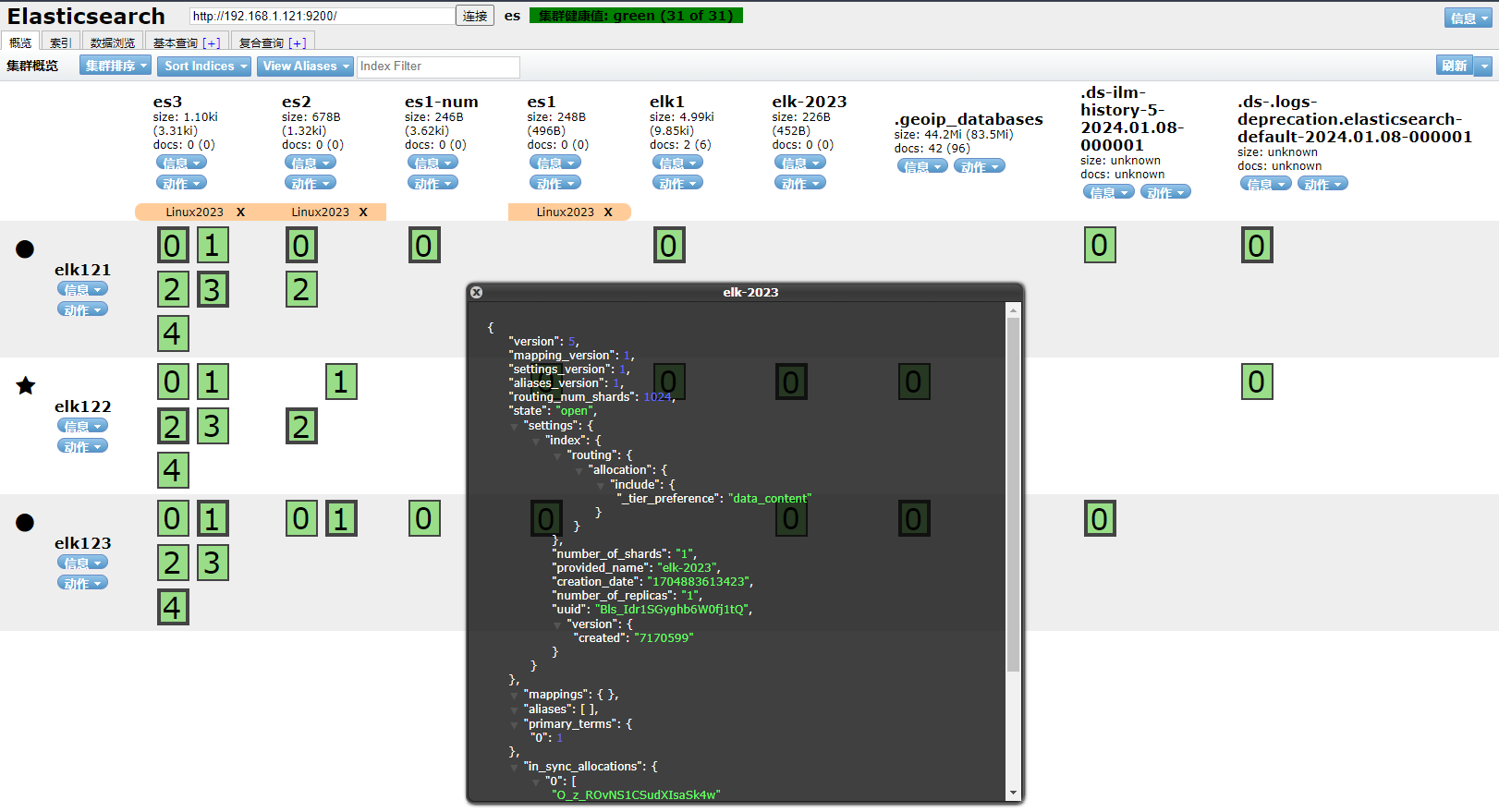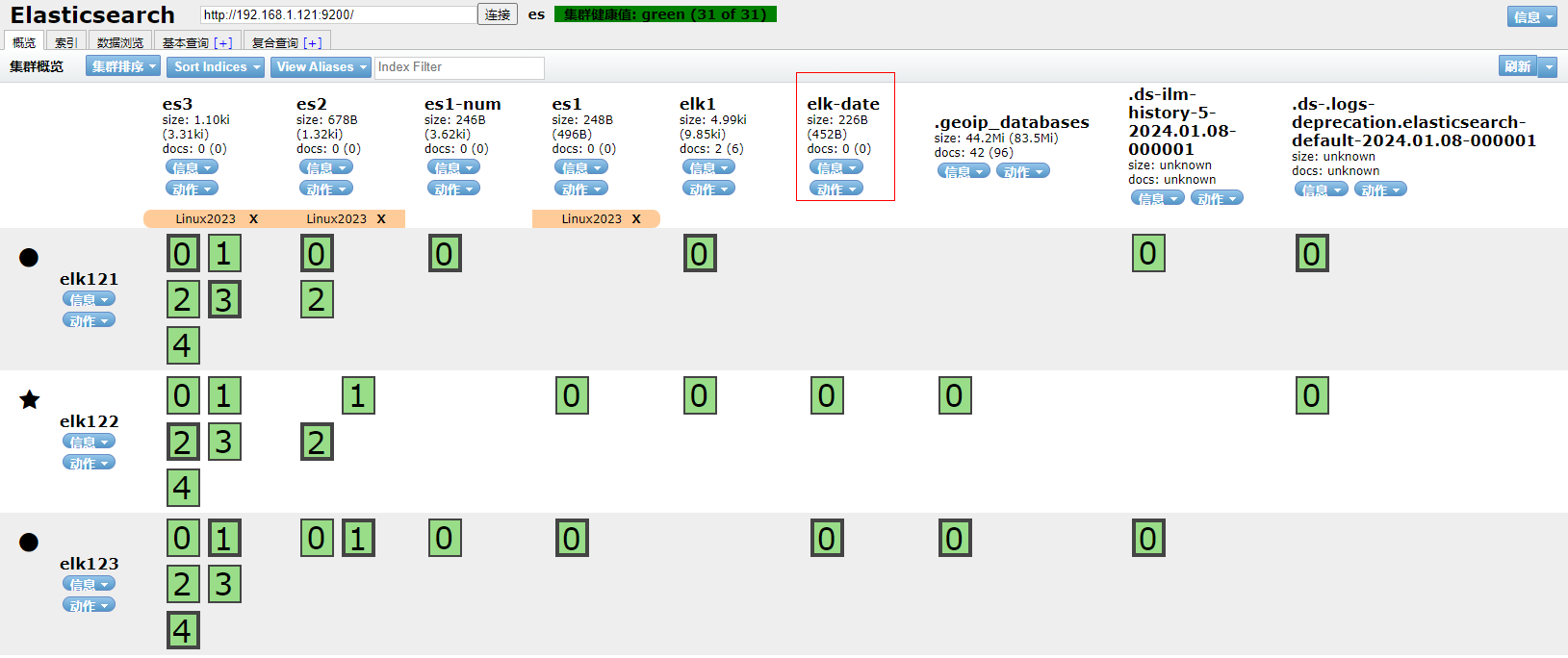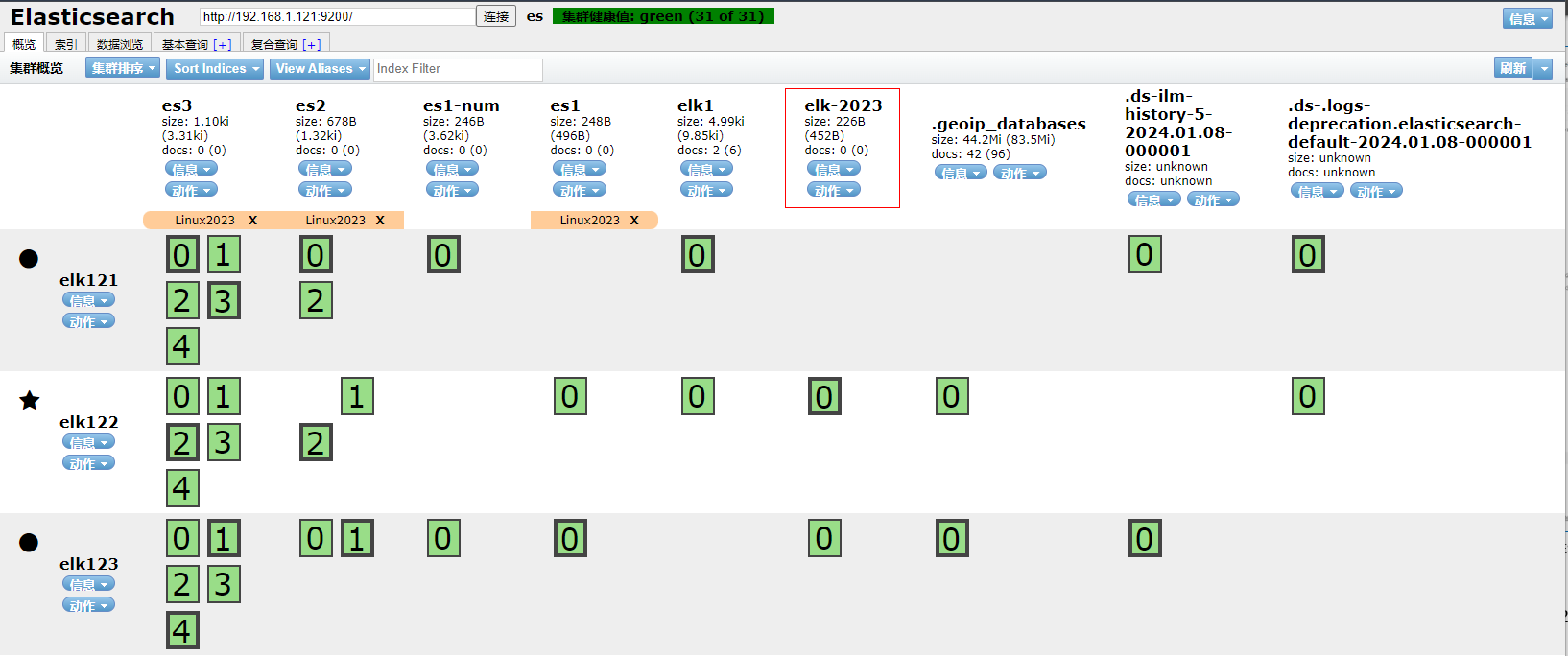 2、打开ES Head扩展程序查看索引elk-2023已经被删除