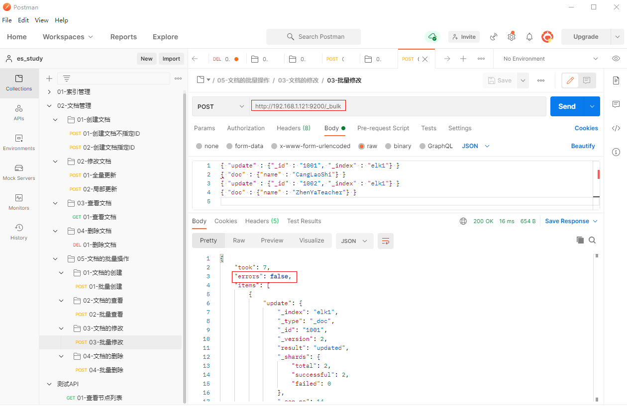 1、填写POST请求http://192.168.1.121:9200/_bulk,批量修改文档