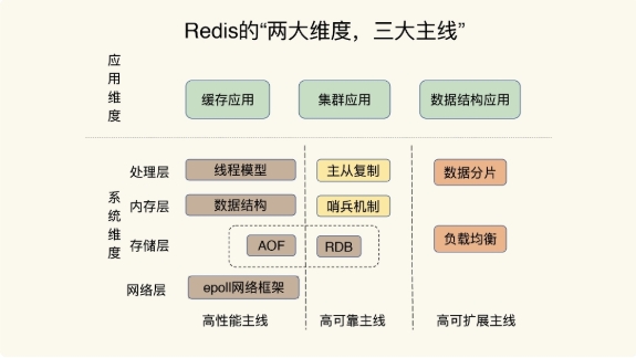 系统维度可以继续细分为处理层、存储层、网络层,适合从底层原理理解 Redis 为什么快、为什么这样设计。