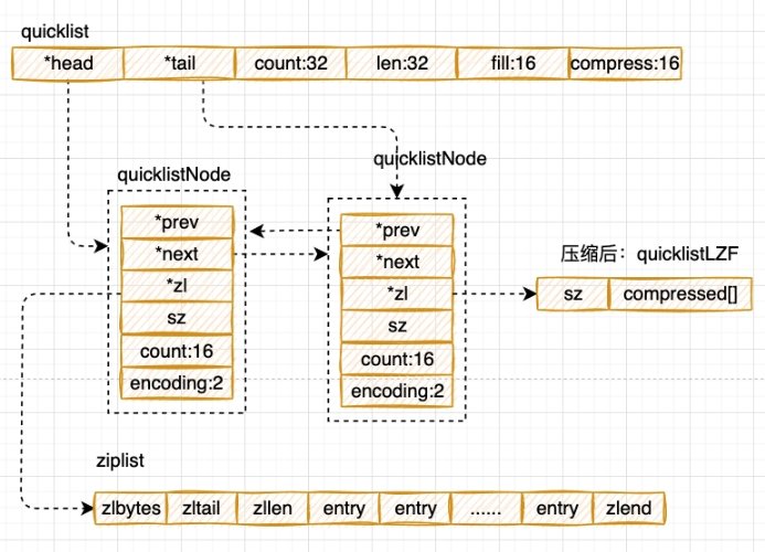 quicklist融合了ziplist和linkedlist的功能;