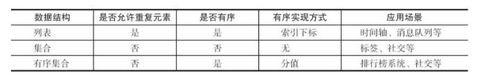 列表、集合、有序索引三者的异同点: