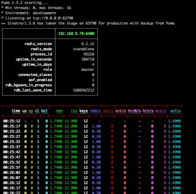 java -jar redis-stat-0.4.14.jar --server 192.168.9.78:6400 192.168.9.78:6411 5