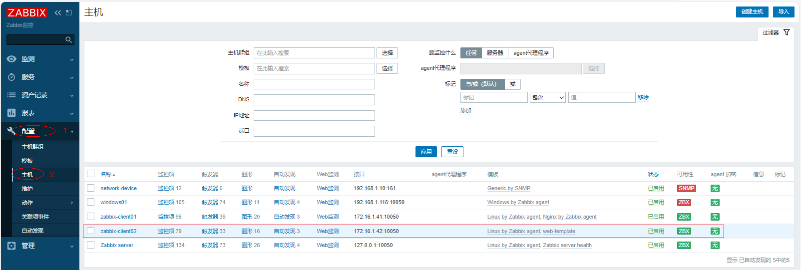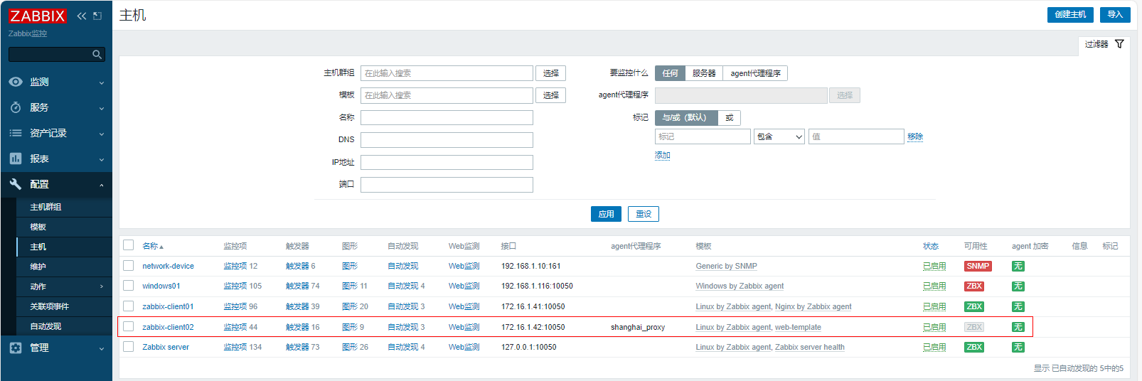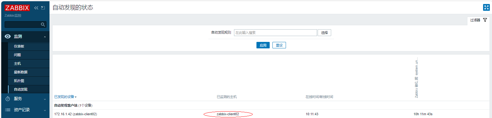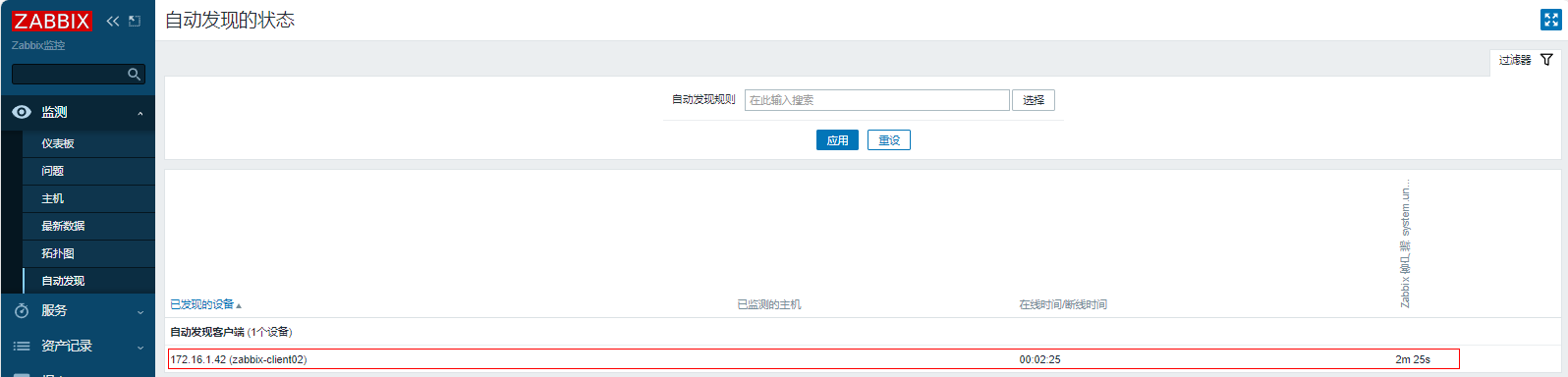3、检查自动发现的主机,观察到已自动发现客户端,但是并不会添加到zbx主机