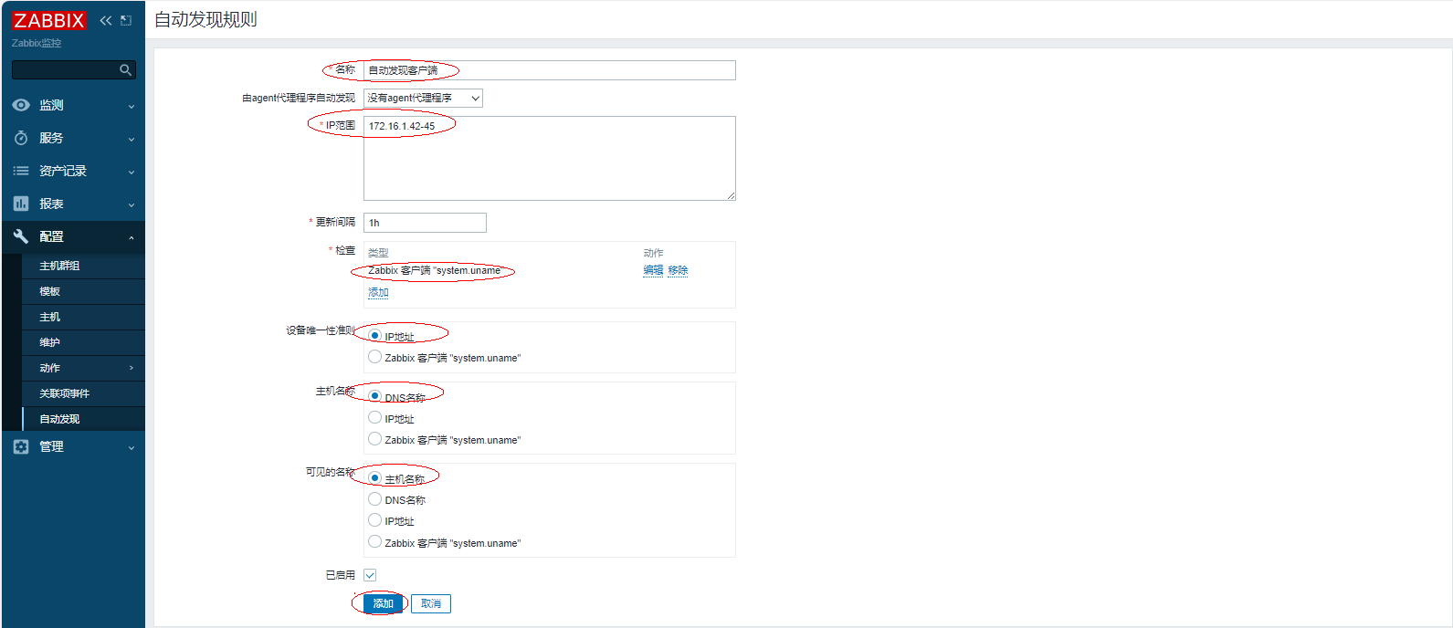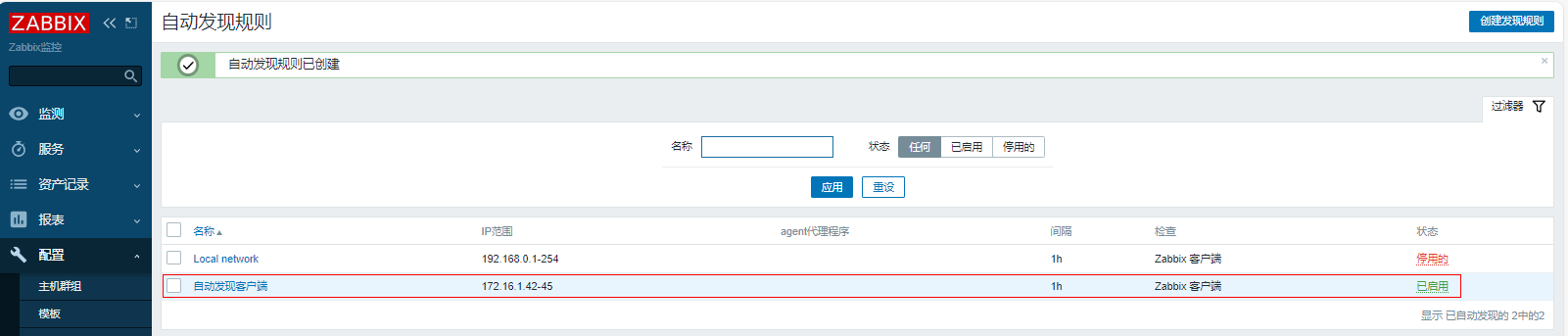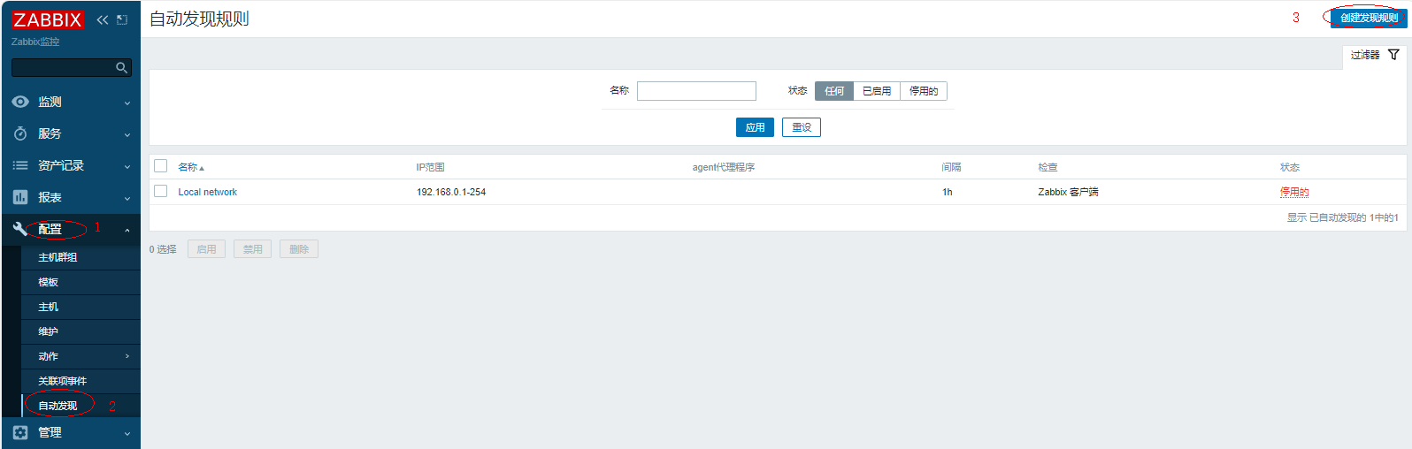 1、依次点击【配置】-【自动发现】-【创建发现规则】