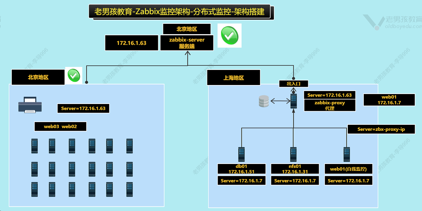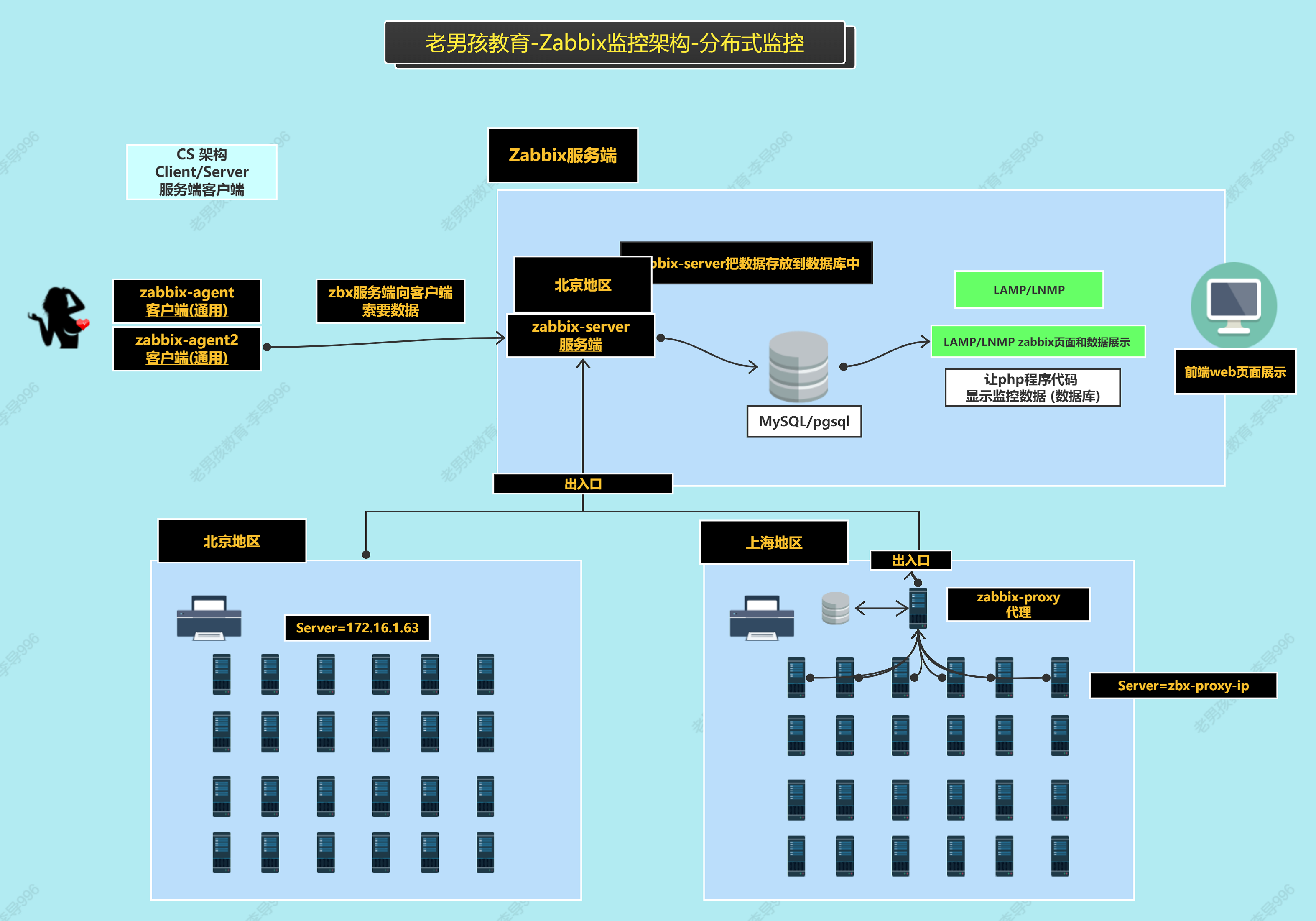 | 多个节点(区域、机房)zbx监控问题 | 方案01:客户端直接写服务端公网ip | 方案02使用分布式监控 |