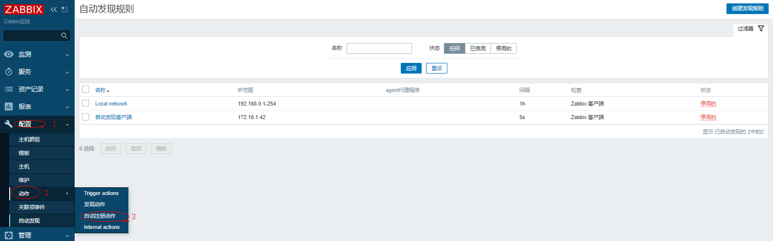整体流程与自动发现类似,但是自动注册无法再web页面直接查看是否发现了主机,只能看是否添加主机。